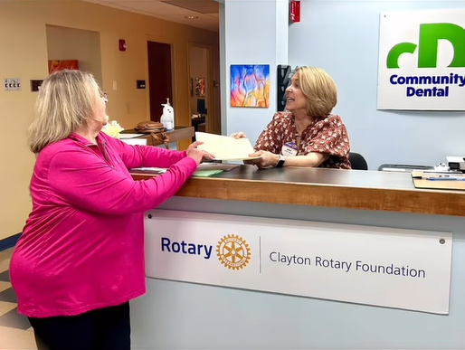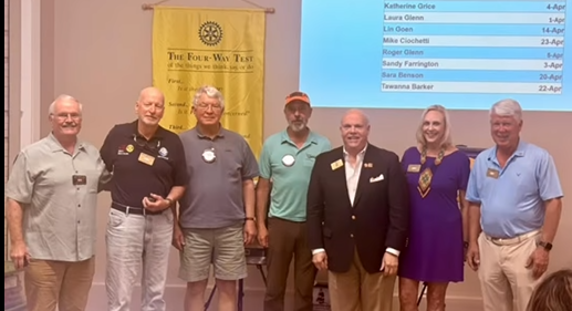 We celebrated a lot at our last meeting—birthdays, wedding anniversaries, Rotary anniversaries, and Community Dental’s fifth year in operation! We also celebrated four recipients for their continued support of Rotary as Paul Harris Society members by donating $1,000 per year to Rotary International. Our District Foundation Chair, Bill Strickland, along with Elizabeth Gill, presented pins to David Tatum, Matt Mitchum, Lee Penland, and Scott Thompson. We also presented PolioPlus Society pins to five members who have made the pledge to contribute at least $100 per year to the PolioPlus campaign until polio is eradicated.